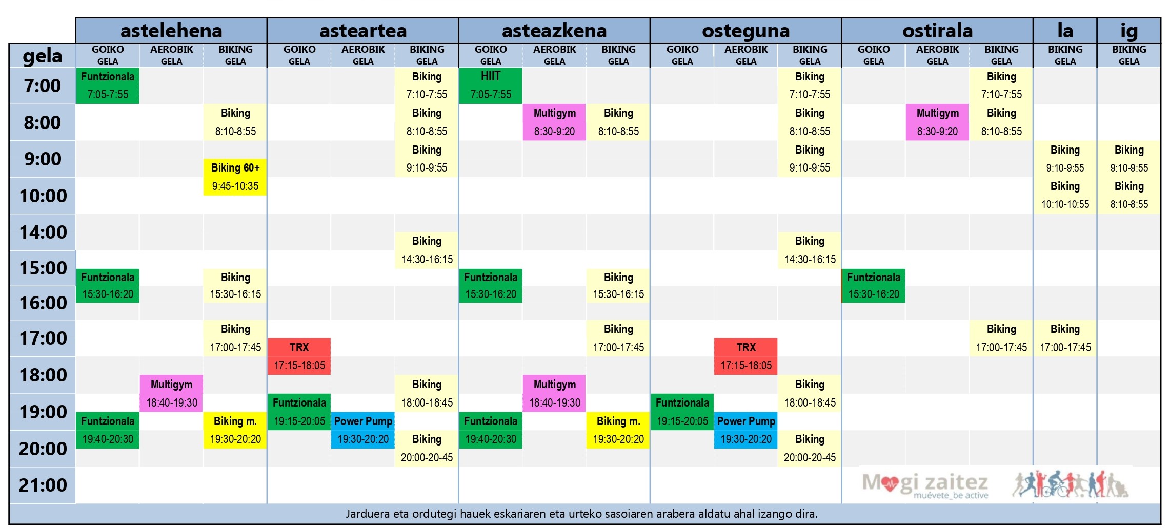 HIIT (goiko gela, 3ª planta): high intensity interval training o entrenamiento de alta intensidad, es un tipo de entrenamiento deportivo basado en sesiones de intervalos cortos y muy intensos que alternan esfuerzo y recuperación.